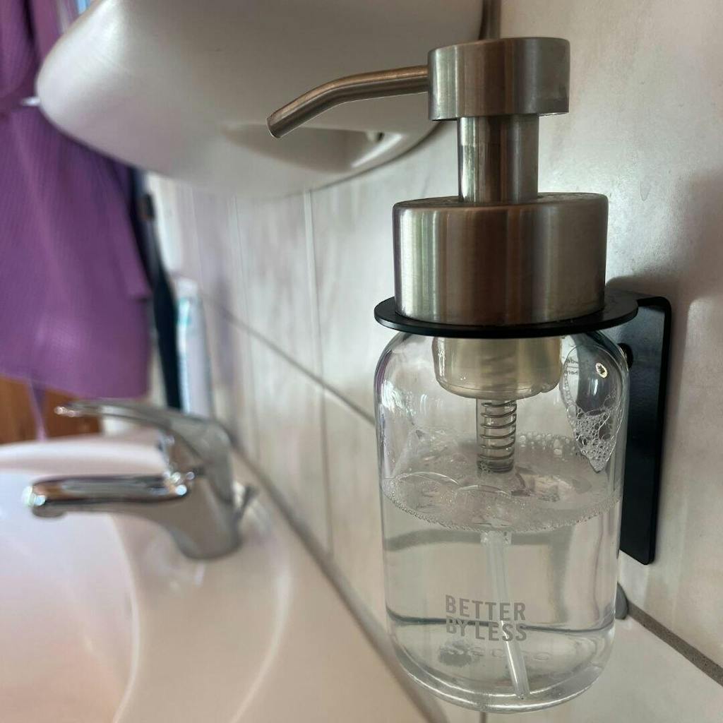 Der nachfüllbare Schaumspender ist nicht nur ein stilvolles Statement in Bad oder Küche, sondern auch ein Zeichen bewussten Konsums: 92 % weniger Verpackung und kein Überdosieren, sondern doppelte Ergiebigkeit (im Vergleich zu Gelseifen) – ohne Kompromisse bei Wirkung und Komfort.